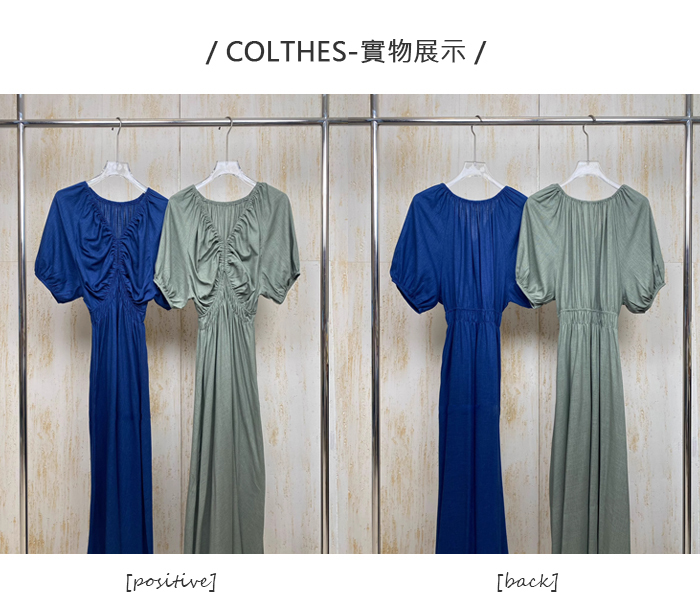連身裙 洋裝 V領 寬鬆 抓皺 復古 兩色 氣質