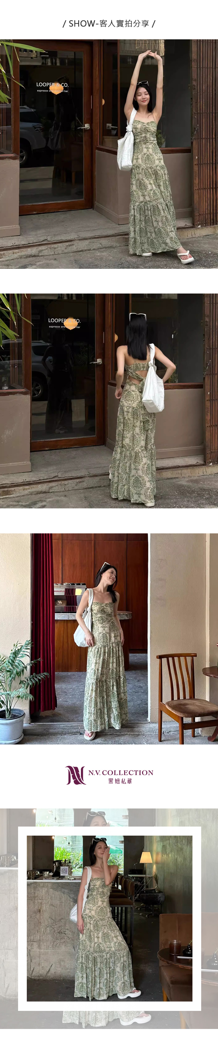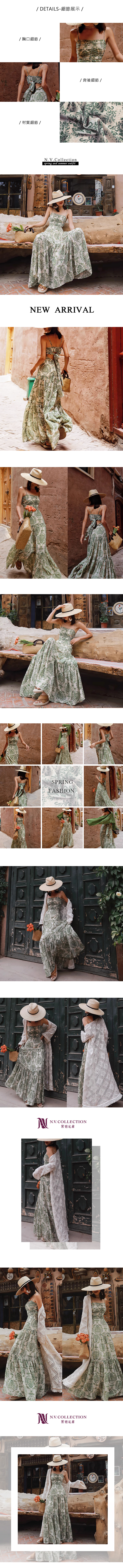 連身裙 洋裝 綠植 雪紡 漸層 細肩帶 蛋糕裙 約會 ~早春現貨~現貨實拍~黑妞私藏-AZ023331/A008