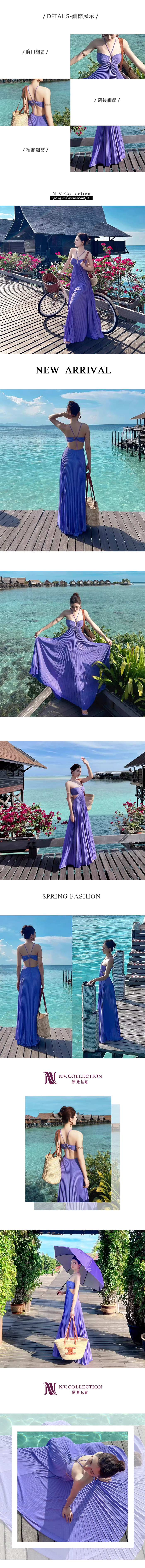 連身裙 洋裝 掛脖 百褶 傘狀 綁帶 平口 露腰 露背 約會 度假洋裝~現貨實拍~黑妞私藏-AZ023347/A155