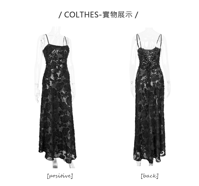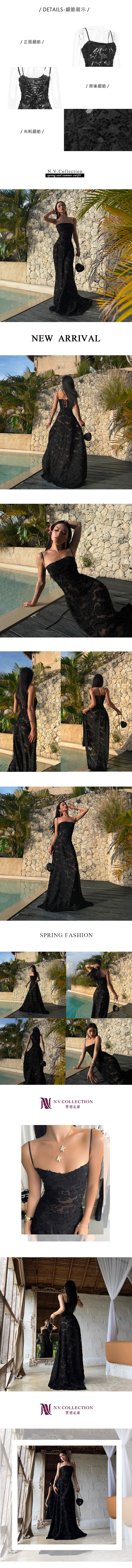 連身裙 洋裝 吊帶 綁繩 透膚 性感 魚尾 優雅 約會~現貨實拍~黑妞私藏-AZ023443/A066