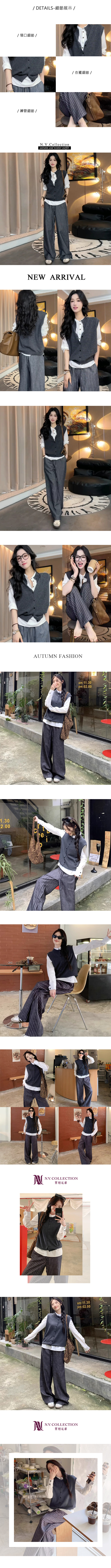 針織 馬甲 氣質休閒 百搭 條紋 連身褲