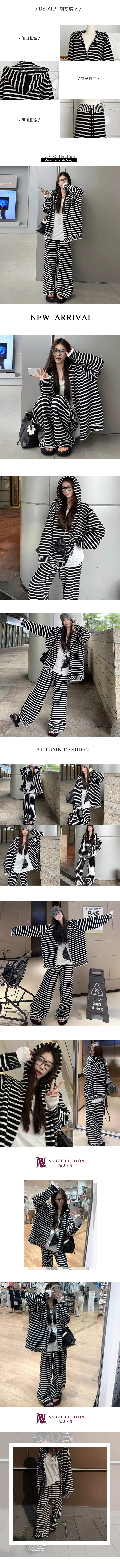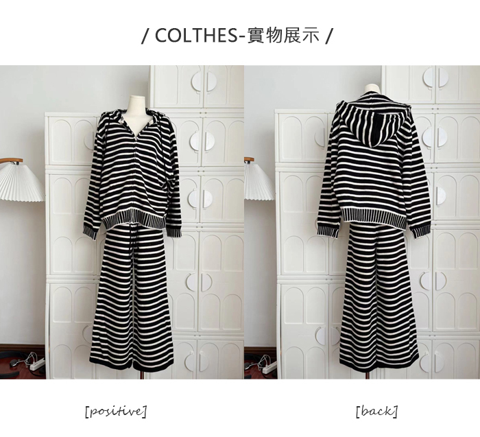 休閒套裝 弛鬆感 條紋 針織 垂墬寬褲闊腿褲 機場穿搭 熱賣款