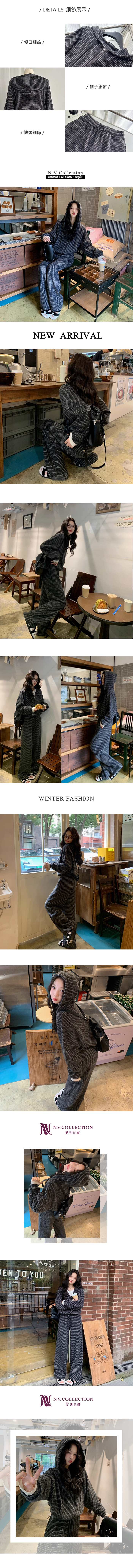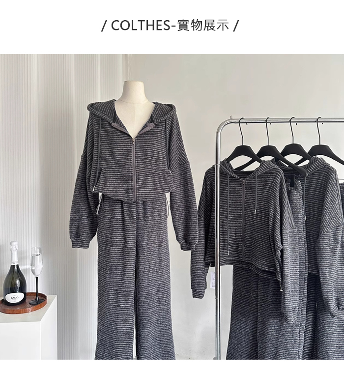 休閒套裝 弛鬆感 條紋 針織 垂墬寬褲闊腿褲 機場穿搭 熱賣款