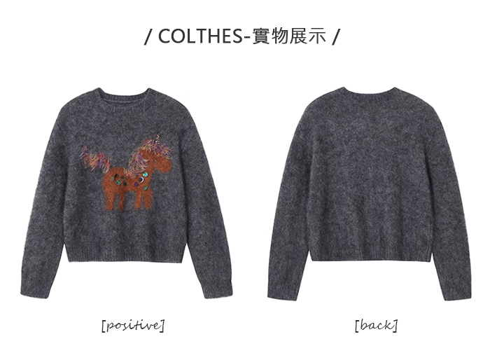 紅色 馬年限定立體馬刺繡毛感針織上衣四色-DW661272/A044
