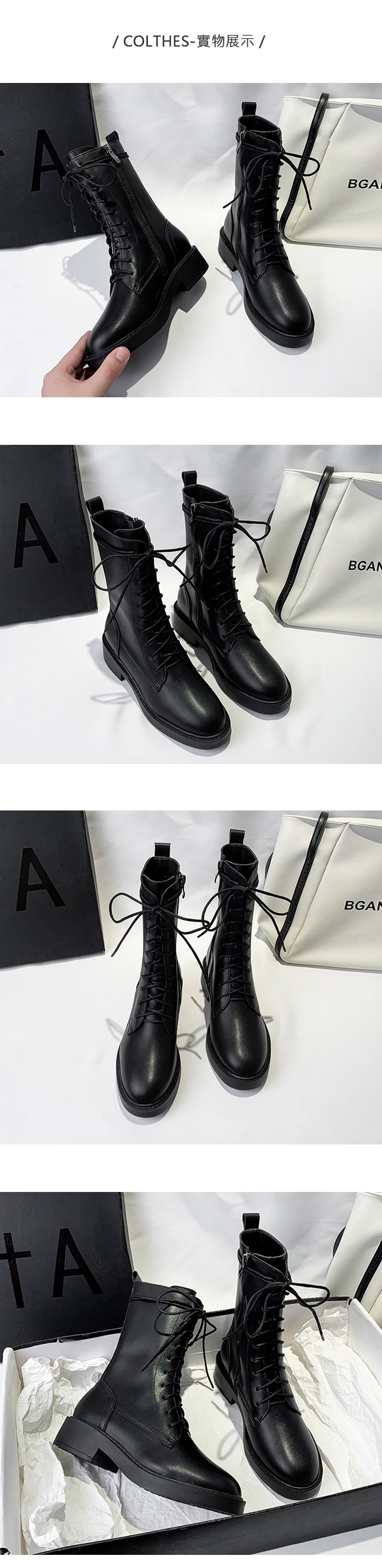 高筒 中筒 粗跟 軍靴 黑色 歐美 圓頭 拉鍊 方形 帥氣 百搭 派對 度假 派對 波西米亞~現貨實拍~黑妞私藏-G1350224/G083